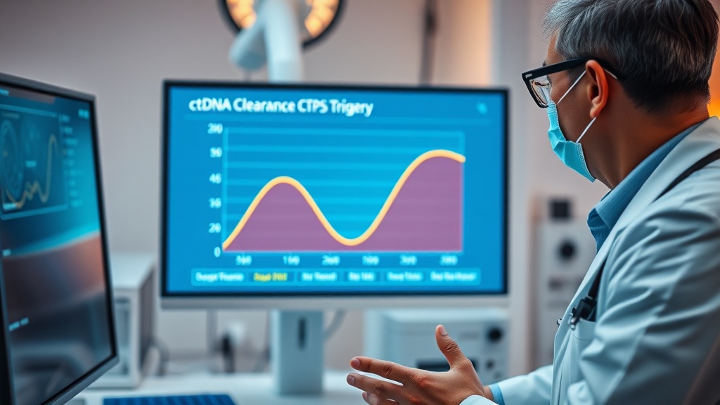 Step 3: Interpret ctDNA dynamics for risk stratification. Rapid clearance (ctDNA becoming undetectable early in treatment) suggests favorable biology and potential candidacy for standard or de-escalated therapy. Persistent or slowly declining ctDNA indicates higher residual disease risk and may warrant treatment intensification. The specific thresholds depend on the assay and cancer type — this is not a one-size-fits-all cutoff[2].